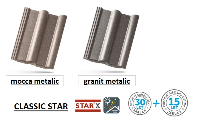STAR představuje nejnovější trend v technologii výroby střešních krytin. Zatímco povrch standardních tašek tvoří pouze několik vrstev barvy, u tašky s technologií STAR je navíc aplikována vrstva vysoce probarveného mikrobetonu, která zaplní všechny nerovnosti a vytvoří dokonale hladký povrch. Vrstva mikrobetonu je přetažena i přes celou plochu předního řezu tašky. Toto vše zvyšuje ochranou schopnost a odolnost krytiny před extrémními vlivy počasí a zajišťuje dlouhodobou stabilitu její původní barevnosti. Speciální, do povrchu integrovoné pigmenty odráží část infračerveného záření a tím omezují přehřívání střechy a podkroví.