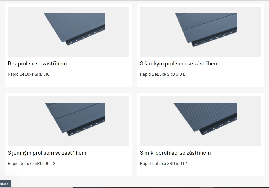Při vývoji inovované střešní krytiny SATJAM Rapid DeLuxe jsme zhodnotili dlouhodobé zkušenosti z realizací původní varianty krytiny SATJAM Rapid a to jak v ocelovém, tak hliníkovém provedení. Nové provedení krytiny přináší výrazné zlepšení a inovace, které usnadní práci s tímto výrobkem a uživatelům přinese benefit v podobě vyšší užitné hodnoty. K zásadním změnám patří zvětšení perforace pro kotvení. Touto úpravou vznikl větší prostor pro dilataci krytiny.