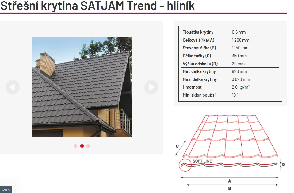 Lehké střešní krytiny SATJAM Trend jsou vyráběny v pásech o celkové délce až 6 070mm (u hliníkového provedení Alumat max. 3 500mm). Díky moderní technologii je možné u této krytiny měnit délku vlny tak, že ji lze přizpůsobit estetickým požadavkům uživatele.